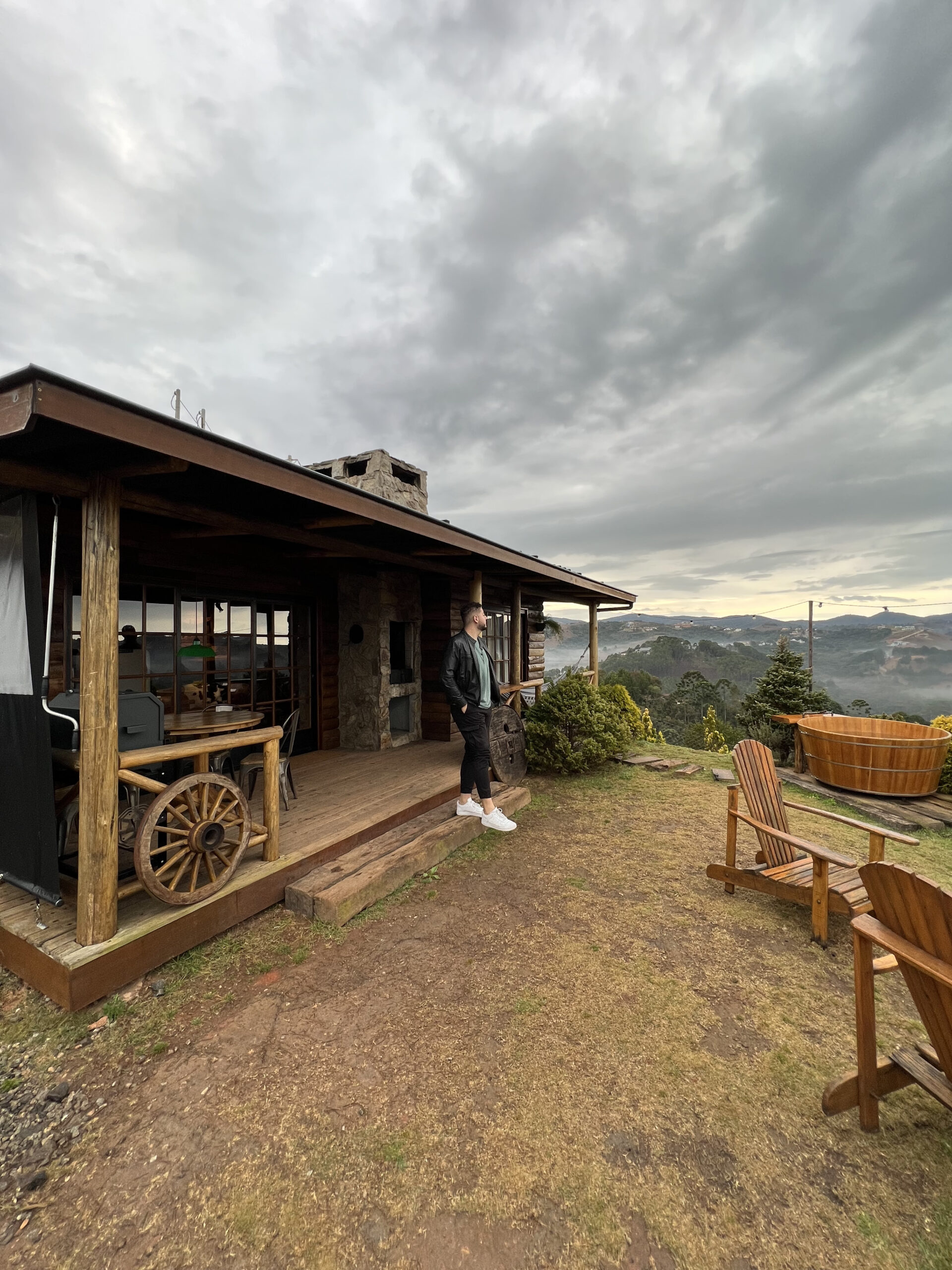 Essa aqui é para quem quer sentir o clima das montanhas em grande estilo. As Cabanas Clampett ficam em Campos do Jordão e têm aquela arquitetura de madeira clássica que parece saída direto de um filme. O lugar fica no alto de uma montanha, garantindo uma vista exuberante para o vale que é de tirar o fôlego.