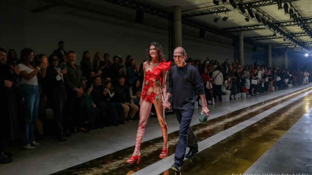 Reconhecido como o estilista que criou a categoria beachwear de alta moda, Slama apresentou uma coleção que revisitou momentos marcantes de sua trajetória, reafirmando sua posição como um dos grandes nomes da moda brasileira. A história de Amir se entrelaça à do próprio SPFW — ele participou da primeira edição do evento, ainda sob o nome Morumbi Fashion, com a marca Rosa Chá.