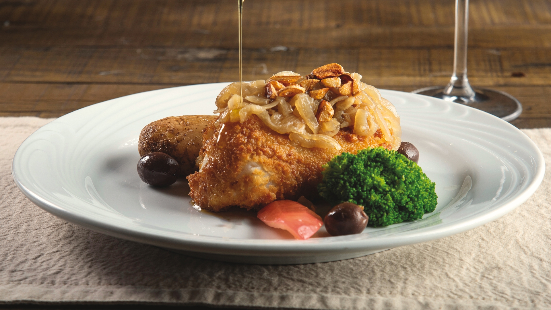O cardápio apresenta uma seleção de receitas de Portugal, com peixes, arrozes e frutos do mar, além de diferentes versões de bacalhau — em posta, lascas ou desfiado —, sempre preparados com generosas doses de azeite. Entre as estrelas da casa, o Bacalhau à Lagareiro é uma boa pedida. Empanado na farinha de rosca, dourado lentamente no azeite com alho e cebola, e acompanhado por batatas ao murro e azeitonas. O resultado é um prato de textura delicada e sabor intenso, que traduz com perfeição a essência da culinária lusitana.