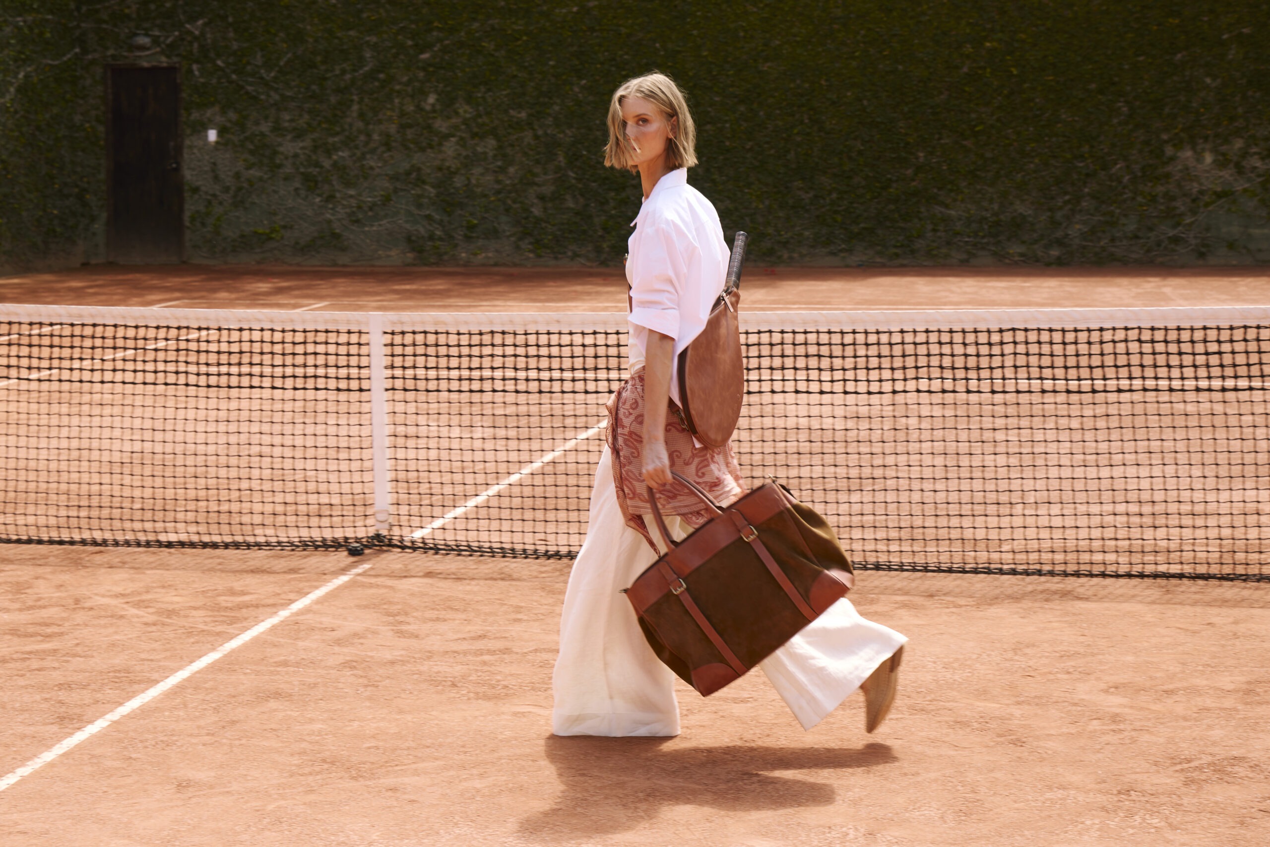 As bolsas chegam em dois modelos, o primeiro confeccionado em couro e camurça, que conta com uma capa removível para acomodar a raquete. O recurso permite que o item, além de sua sofisticação, se transforme em uma peça versátil, ideal para transitar entre a rotina e os momentos de treino e lazer. A segunda versão, em lona, aposta em uma estética mais leve e descontraída, sem abrir mão da praticidade e do conforto, facilitando o transporte dos acessórios com elegância descomplicada.