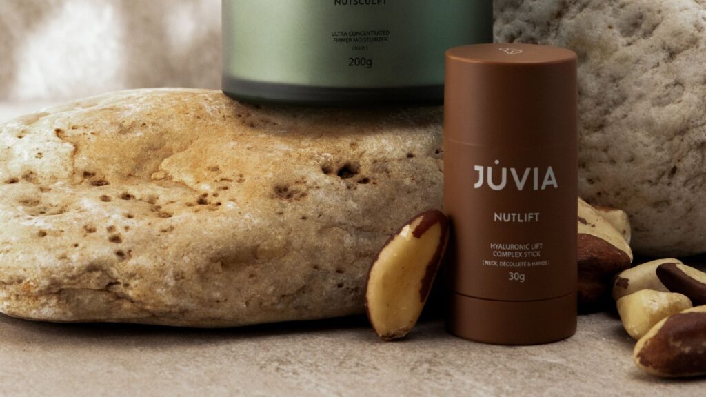 Para estrear no mercado, a Juvia lança três produtos com texturas indulgentes e assinatura olfativa sofisticada: uma Máscara Labial Noturna, Bastão lifting para pescoço, colo e mãos e um Hidratante Firmador para o corpo. Um de seus grandes diferenciais está na combinação poderosa das castanhas brasileiras com ativos que revitalizam a pele.