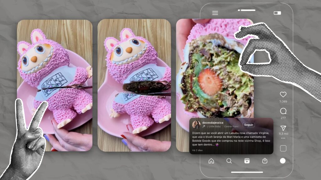 O mesmo padrão se aplica ao morango do amor, uma releitura da maçã do amor com morangos frescos e calda de caramelo, que viralizou no Brasil. Os vídeos com a receita acumulam milhões de visualizações e aparecem tanto em perfis de confeiteiras profissionais quanto de vendedoras iniciantes. A estética é vibrante, a execução é simples e o impacto visual é imediato. Mas o que explica a adesão massiva não é a beleza do doce, é a possibilidade de transformar aquilo em fonte de renda, gesto de cuidado, memória afetiva ou tudo isso ao mesmo tempo. Criadoras relataram aumento de vendas, quitação de dívidas e acolhimento emocional por meio do conteúdo. A viralização não é só estética, é também sobrevivência.