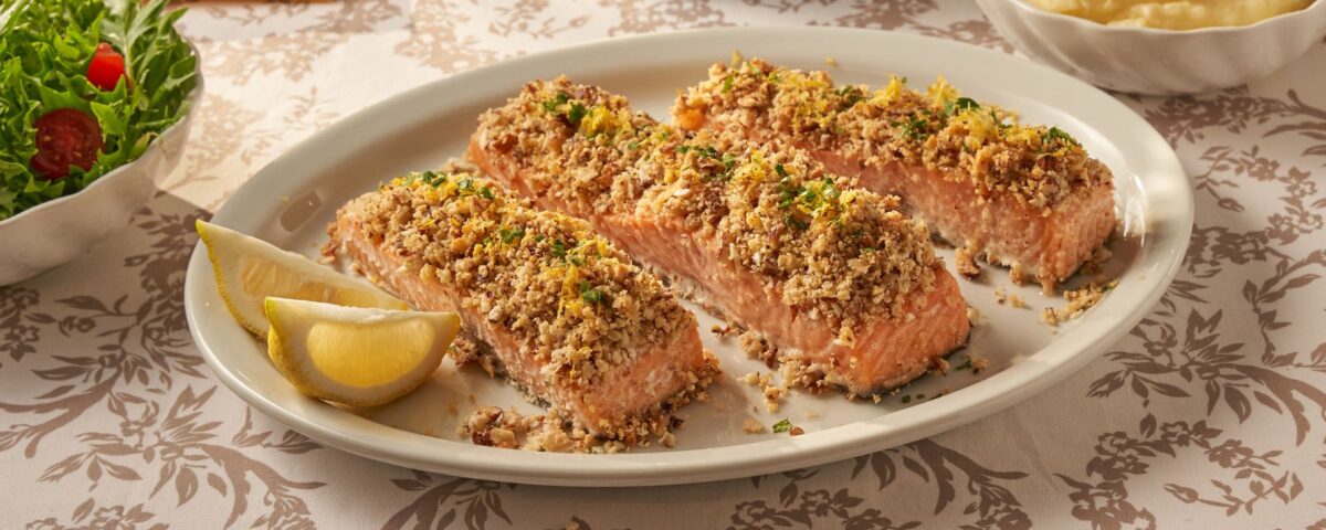 Elegante, aromático e surpreendentemente fácil de preparar: o Salmão com Crosta de Amêndoas e Limão com Purê de Batata é o tipo de receita que transforma uma refeição comum em uma verdadeira experiência gastronômica. Confira o passo a passo de como preparar essa receita que une a delicadeza do salmão à crocância das amêndoas e ao toque cítrico do limão.