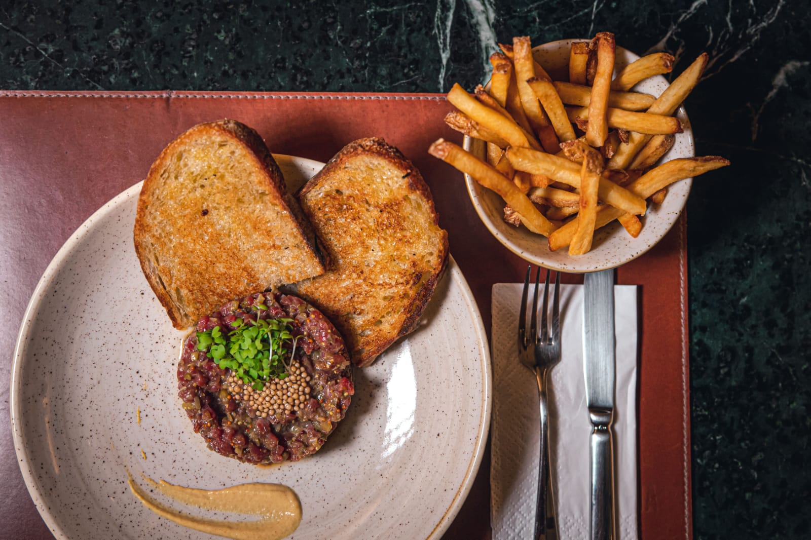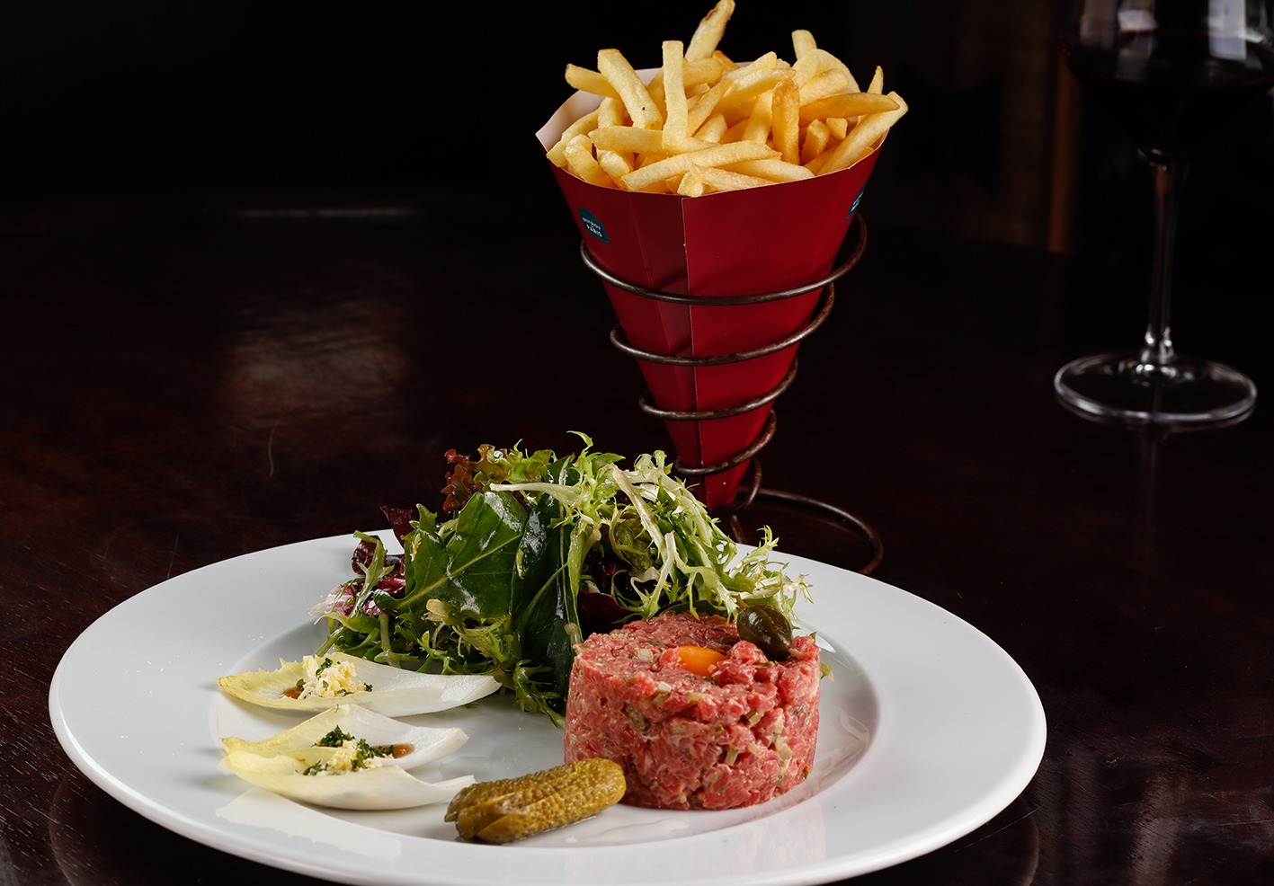 Referência da culinária francesa em São Paulo, o Bistrot de Paris mantém em seu cardápio um steak tartare que traduz fielmente a tradição do prato. Preparado com carne crua cortada na ponta da faca e temperada com precisão, o clássico é servido com batata frita crocante e salada fresca. A receita reflete a proposta da casa, baseada em técnica rigorosa, ingredientes bem escolhidos e respeito absoluto à tradição.