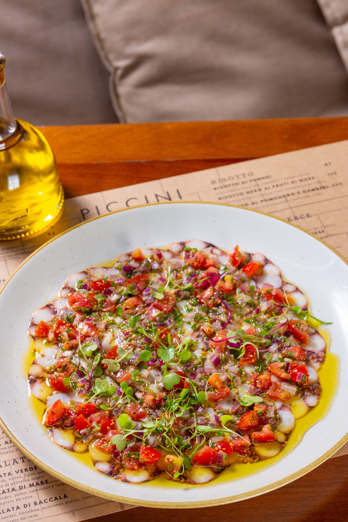 Inaugurado em 2021, o Piccini Cucina apresenta um menu que percorre diferentes regiões da Itália. Entre os crudos, aparecem o Tartare di Mignon, com mignon picado na faca, e o Tartare di Salmone, com perfume de limão siciliano e mix de folhas. O restaurante também oferece Carpaccio de Mignon com mostarda dijon, mini rúcula selvagem e parmesão, além de versões de salmão e polvo.