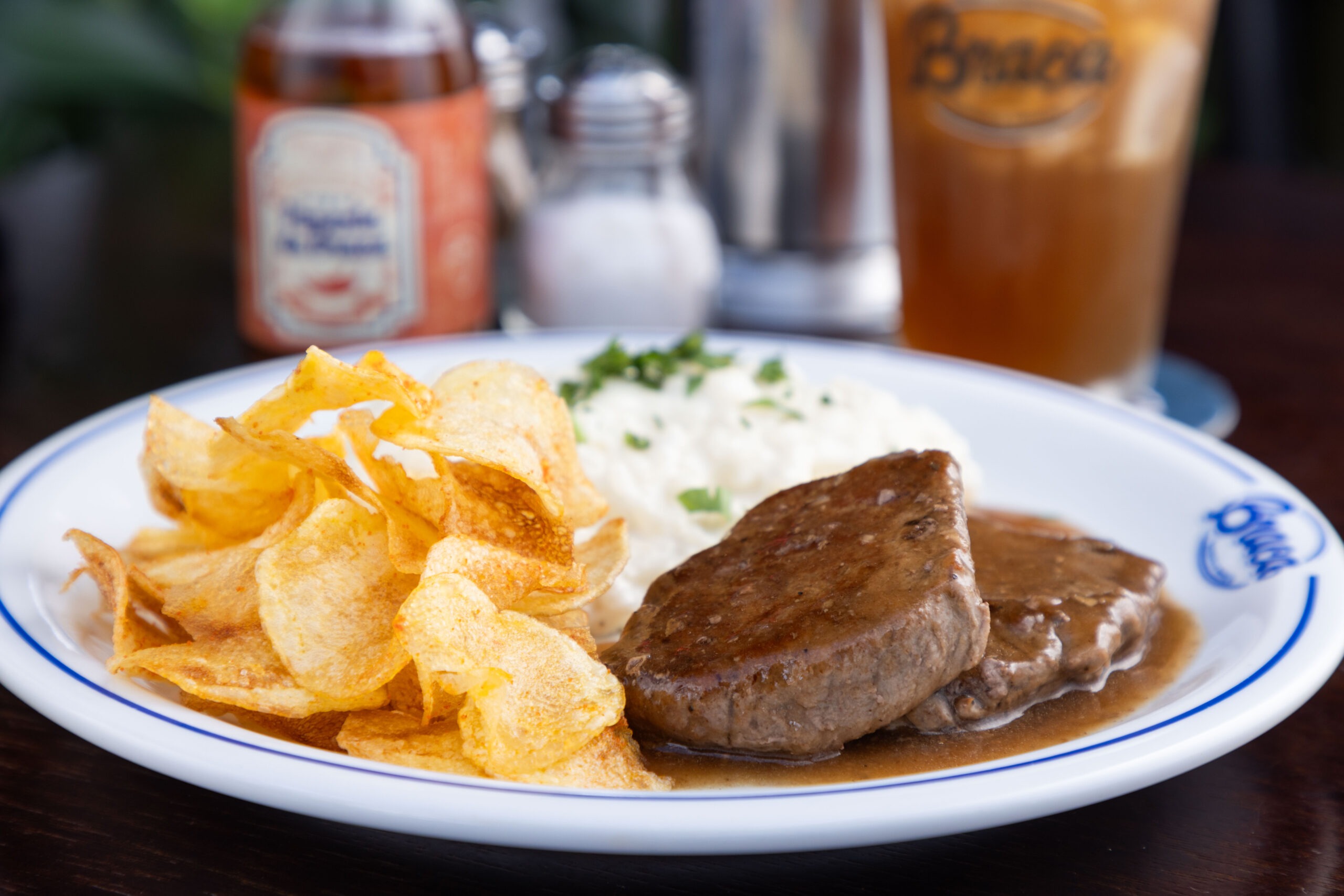 No Braca bar, o Escalope de Mignon é um convite a honrar os bons bares brasileiros, enquanto aprecia uma boa refeição. Acompanhado de molho roti, arroz cremoso de parmesão e batata chips, o prato une inovação e tradição em uma experiência divertida. O local é ideal para se reunir com amigos e família.