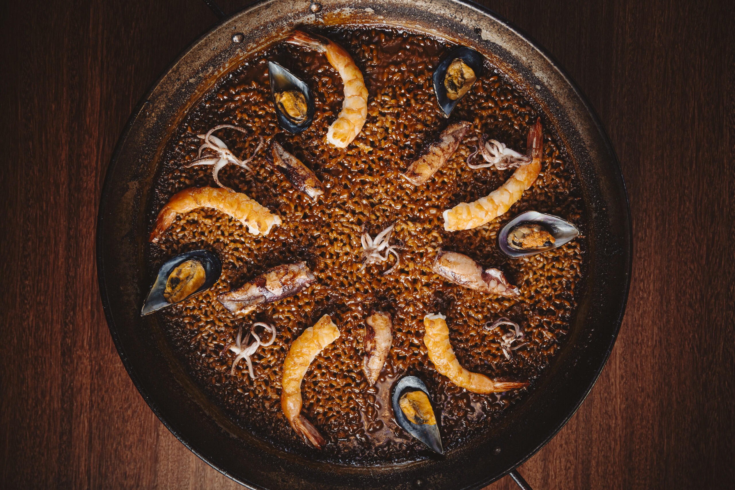 O La Paella, no Campo Belo, é inspirado nas tabernas espanholas e dedica seu menu às diferentes versões do clássico prato ibérico. Entre as opções Premium, destaca-se a paella de cordeiro, com carré, pernil, linguiça e filé mignon suíno, e a Do Mar, que reúne camarões, mexilhões e lulas em preparo rico em sabores marinhos. Já nas versões Tradicionais, a Paella Negra leva nero de sépia, lulas e camarões, enquanto a Marineira combina frutos do mar variados em caldo de peixe aromático. Há ainda a Porco e Frango, com carnes suínas e frango ao pimentón, e a Vegetariana, preparada com legumes frescos e caldo de legumes, mostrando a versatilidade do prato espanhol.