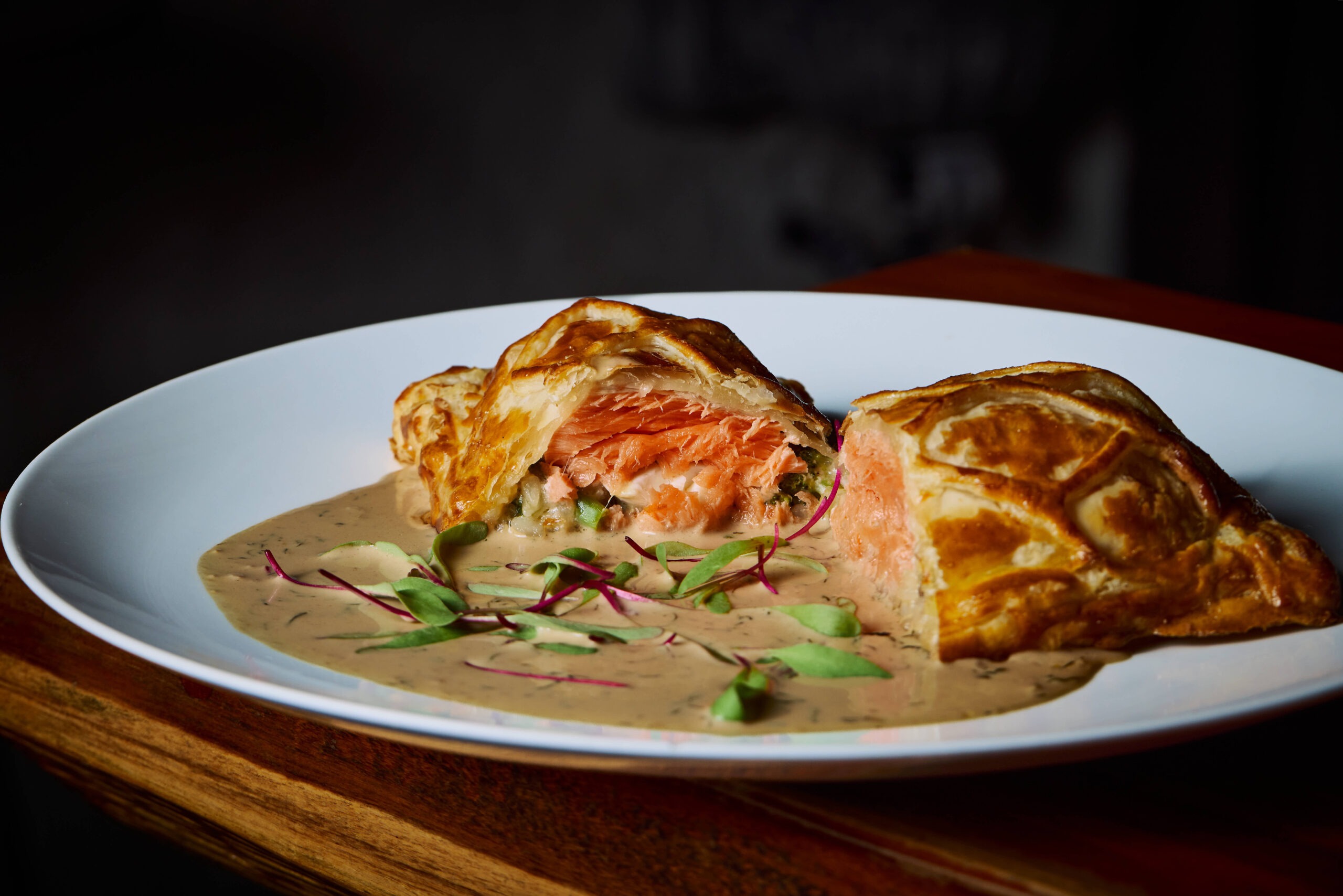 Inspirado na alta gastronomia italiana, o Grotta Cucina destaca o Mare Terre, massa folhada recheada com salmão e ovo acompanhada de risoto de brócolis e cogumelo portobello, finalizado com molho de dill e limão.