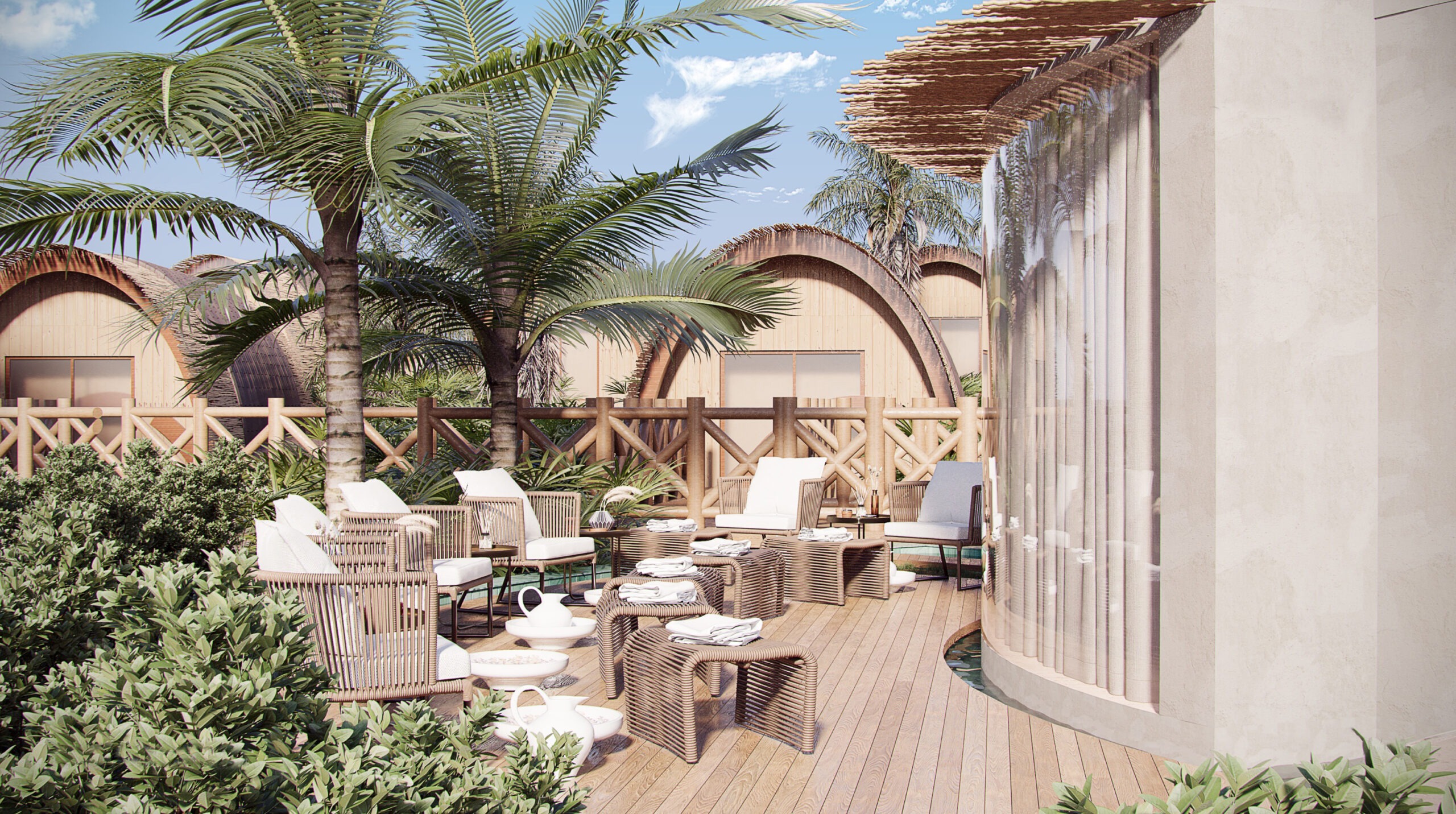 Com apenas 30 bangalôs à beira-mar, o hotel foi concebido para funcionar como uma extensão da própria natureza. A arquitetura privilegia materiais regionais e linhas que respeitam a paisagem, reforçando a proposta de exclusividade e conexão com o entorno.