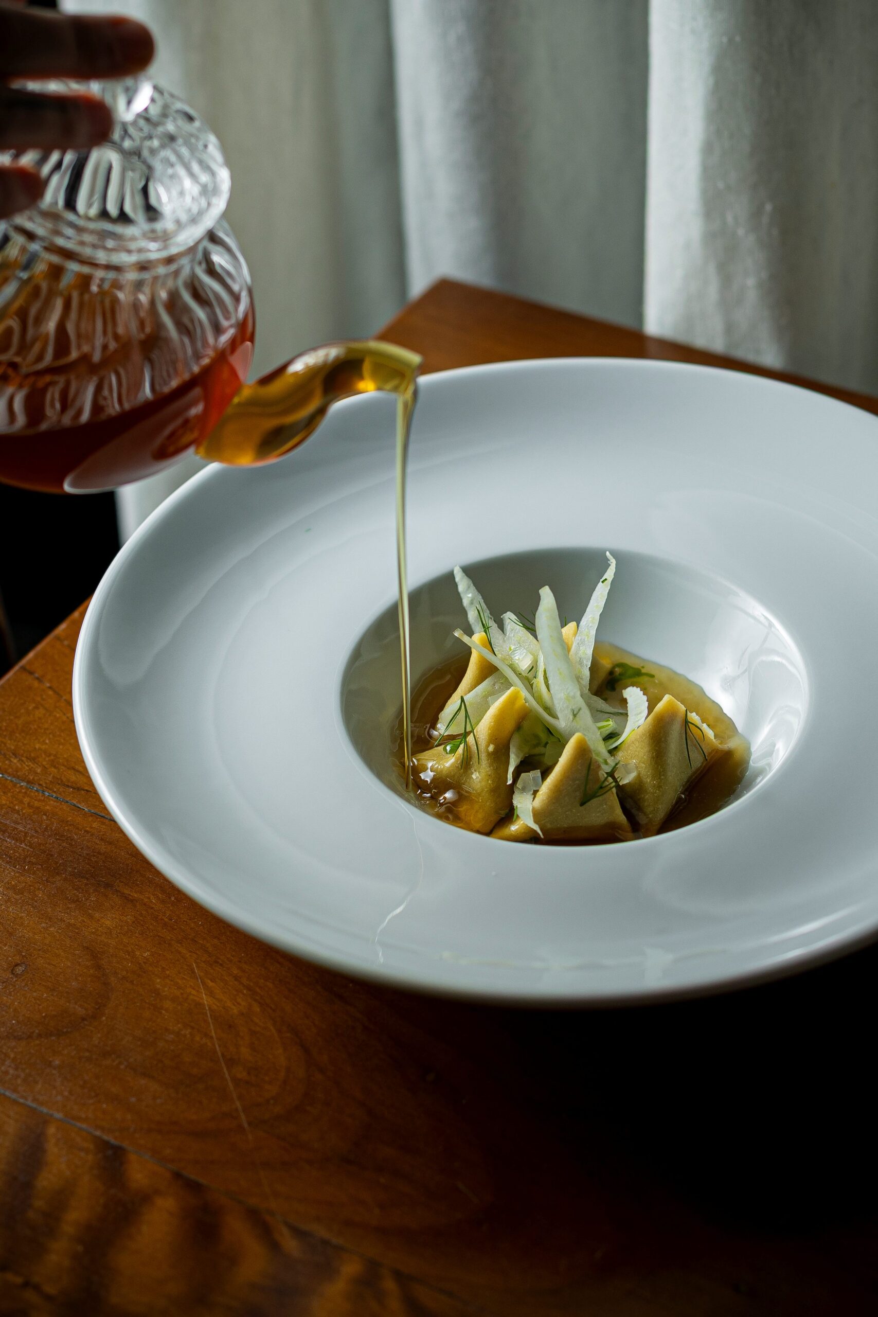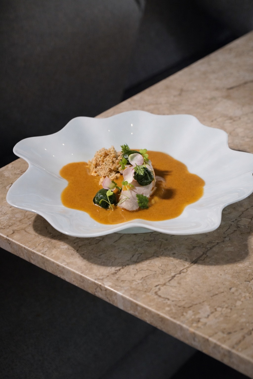 Os ingredientes escolhidos ajudam a costurar esse mapa. Feijão-verde, sururu, carne seca, nata, milho e seriguela aparecem ao longo da sequência, tratados com a mesma lógica que marca a cozinha da chef no Animus, uma cozinha de alma que exala delicadeza sem perder a potência. O menu não tenta reproduzir pratos regionais tal como são feitos no estado, mas usa esses elementos para construir novas leituras.