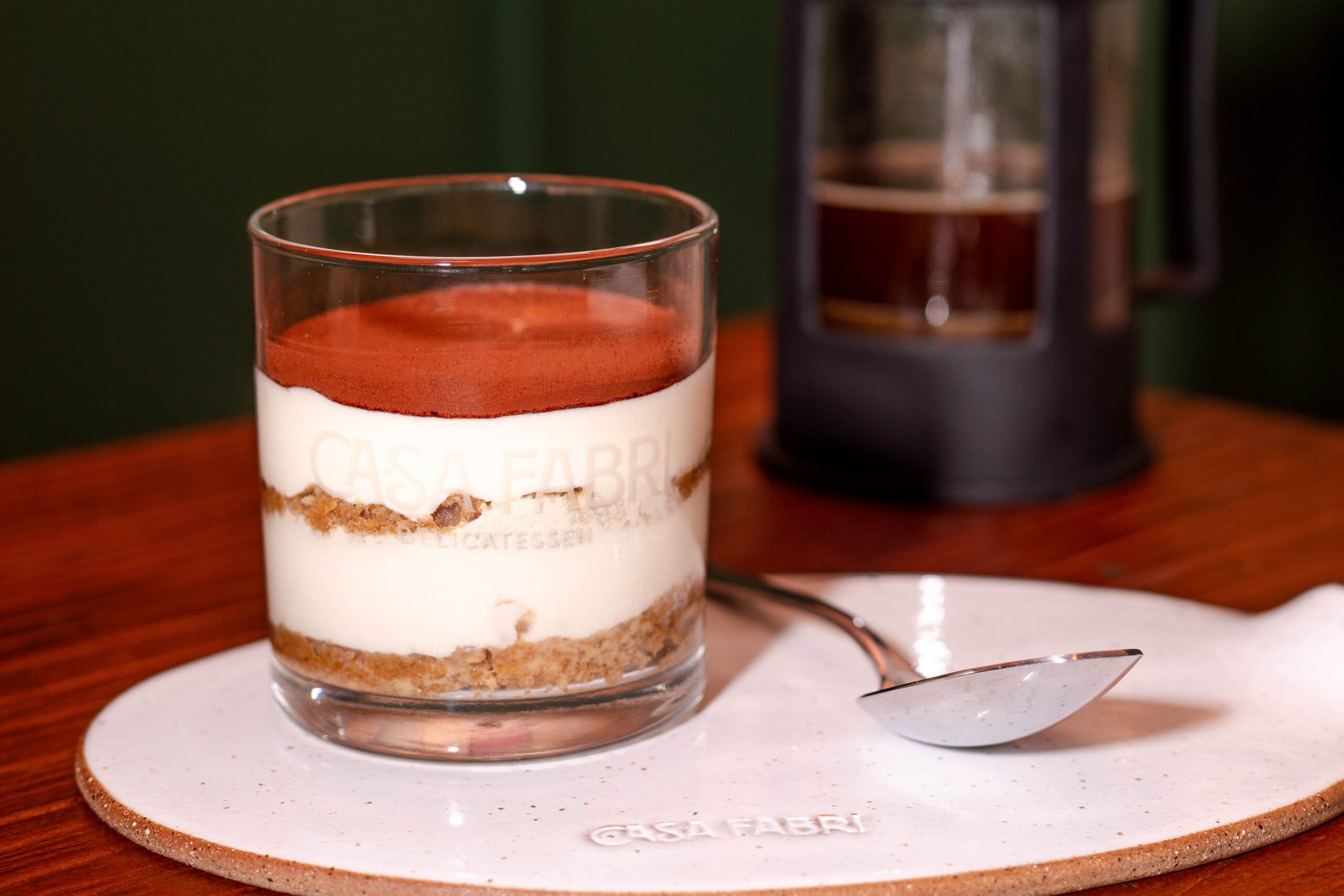 Na Casa Fabri, delicatessen que valoriza o preparo artesanal e o tempo dedicado à cozinha, tudo é feito com cuidado e atenção aos detalhes. Entre as opções do cardápio está o Tiramisù, que segue a receita italiana tradicional, com camadas equilibradas e sabor marcante. A sobremesa pode ser apreciada em uma das mesas do espaço, em Moema, ou em casa, levando o sabor e o aconchego para o conforto do lar.