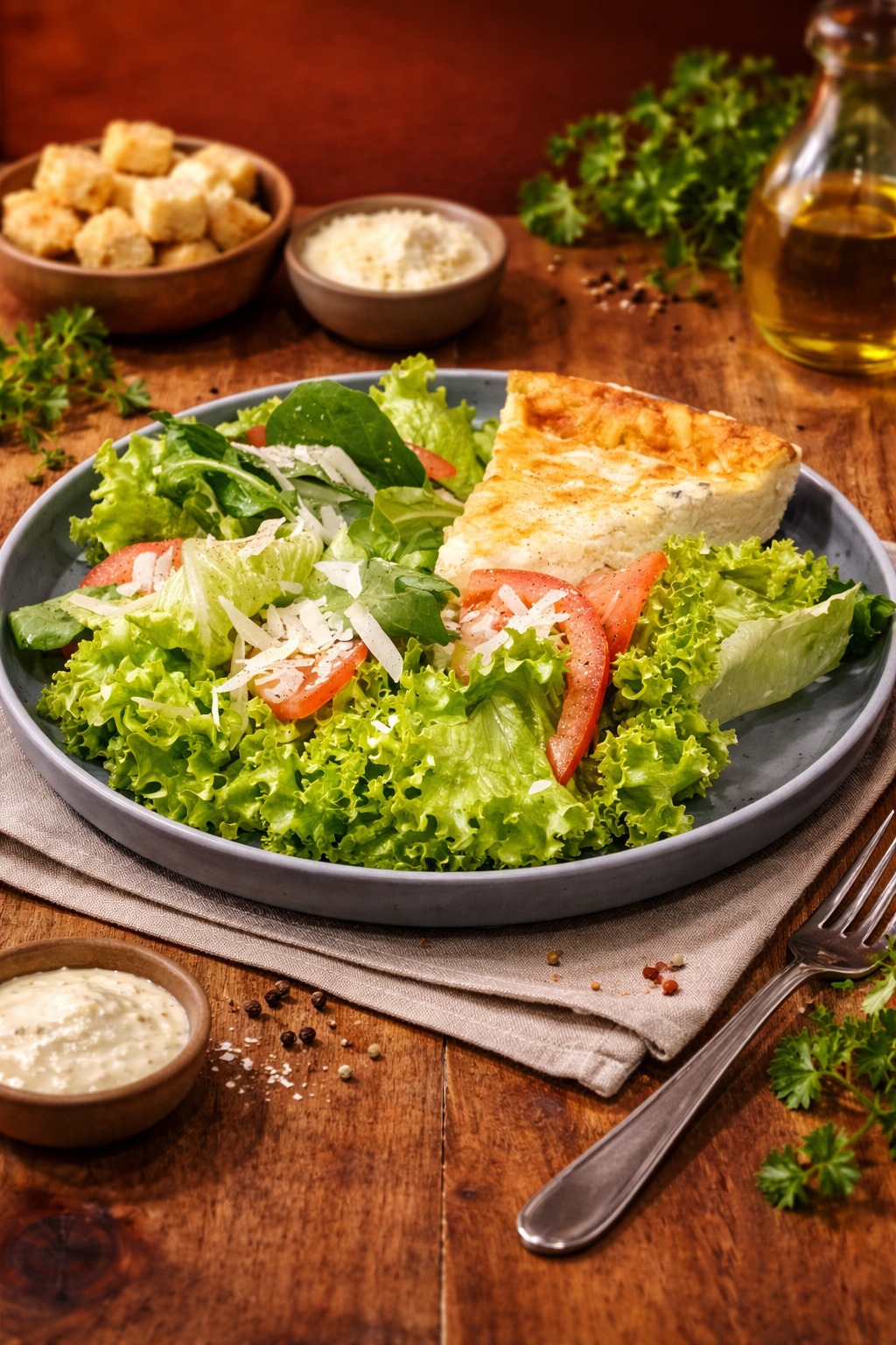 Para quem aprecia porções menores sem abrir mão de sabor, a Forniamo oferece quiches individuais acompanhados de salada fresca. O menu inclui opções como a Quiche Cipolla Caramellata, com cebola caramelizada lentamente, a Quiche Formaggi, que reúne uma combinação cremosa de quatro queijos, e a delicada Quiche de Alho-Poró. Outra pedida sofisticada é a Quiche Al Funghi e Parmigiano, que combina cogumelos e parmesão em um recheio equilibrado. Todas são servidas com uma salada leve de folhas verdes, tomate e lascas de parmesão, criando uma refeição ideal para quem busca moderação e conforto.