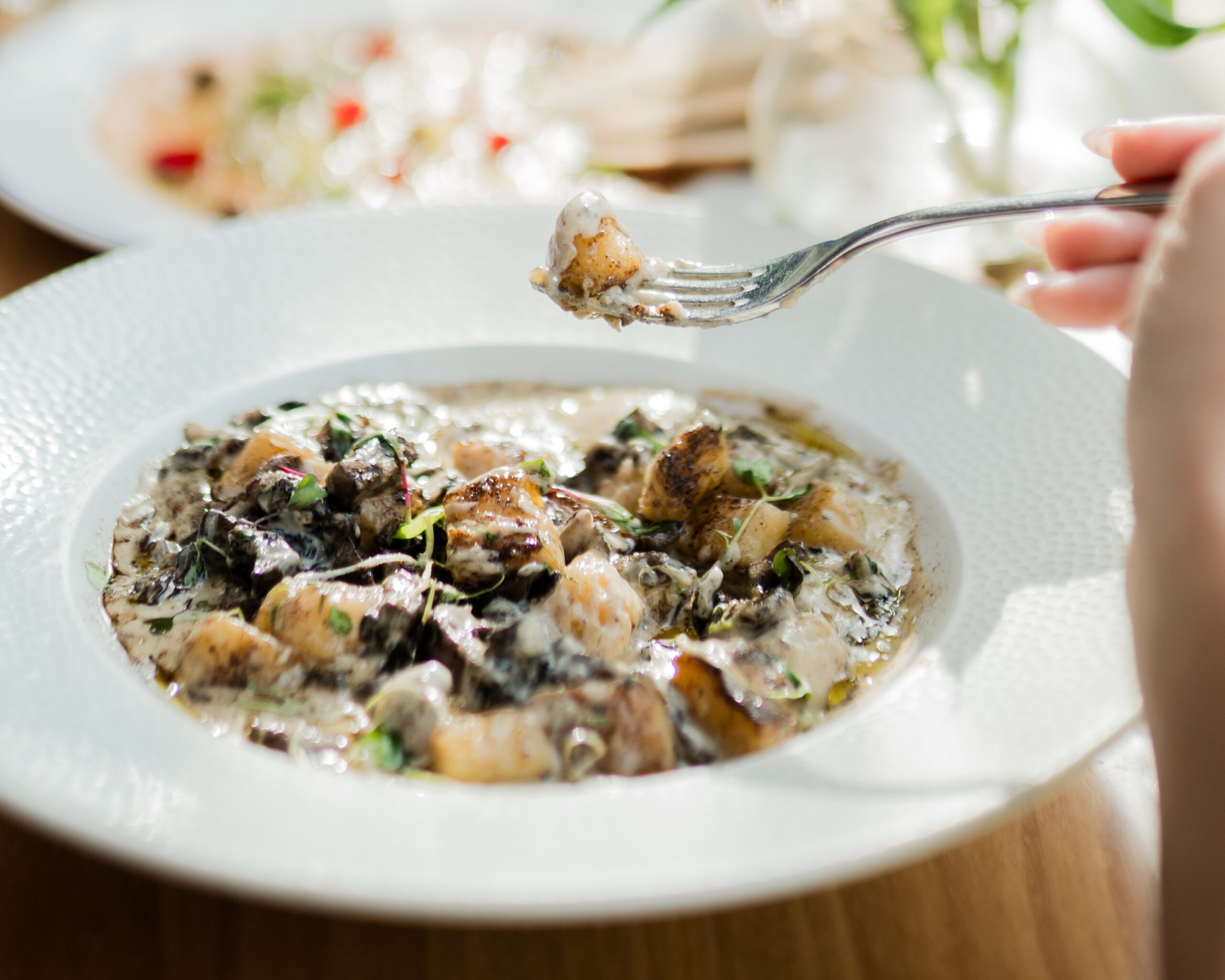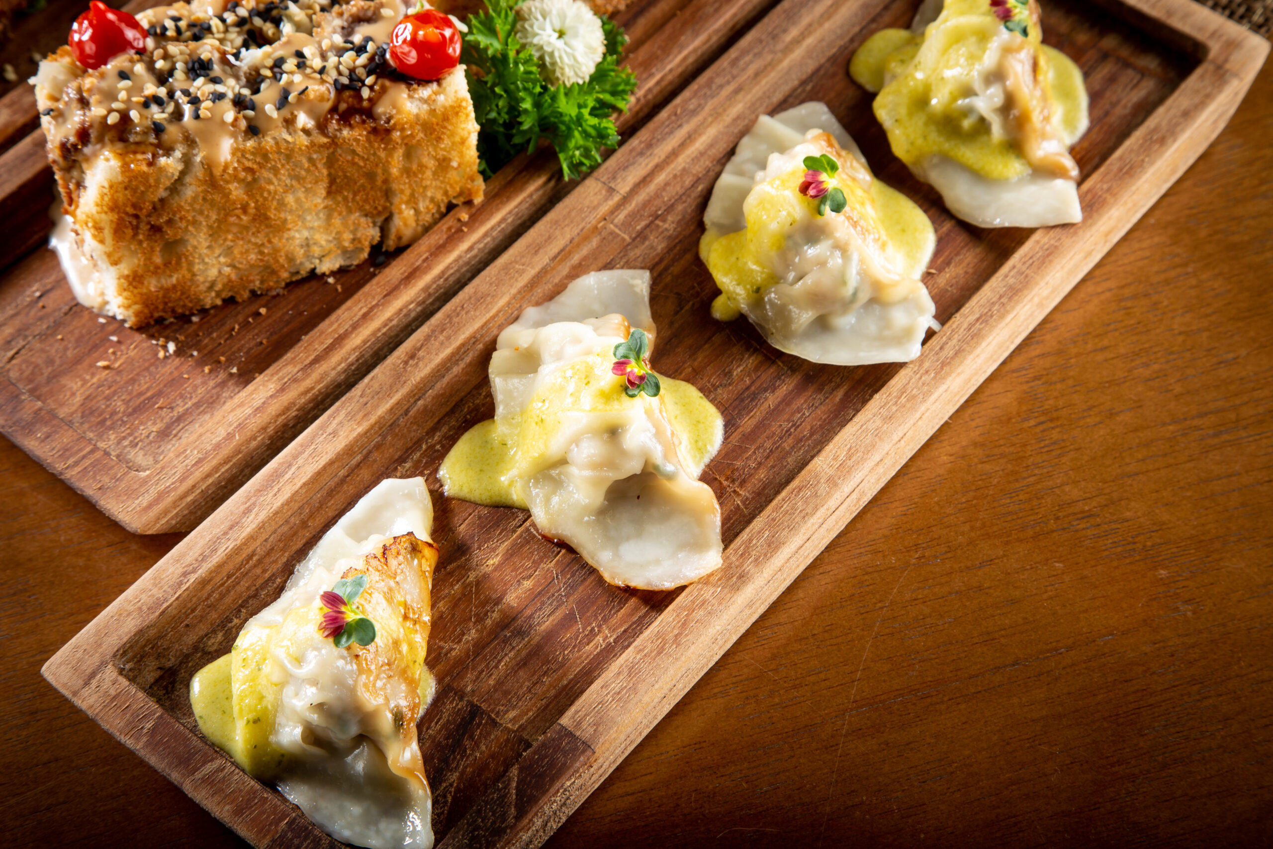 Com clima sofisticado e cozinha pan-asiática, o Kaifu traz o Kimchi Mandu como entrada: gyozas coreanos recheados com tofu e kimchi, servidos com maionese picante — crocantes por fora e intensos por dentro. Como prato principal, os Cogumelos Kaifu são salteados em molho cremoso feito com leite e shoyu, reunindo shitake, hiratake e eryngui em uma preparação delicada e aromática. Ideal para quem busca conforto com personalidade.