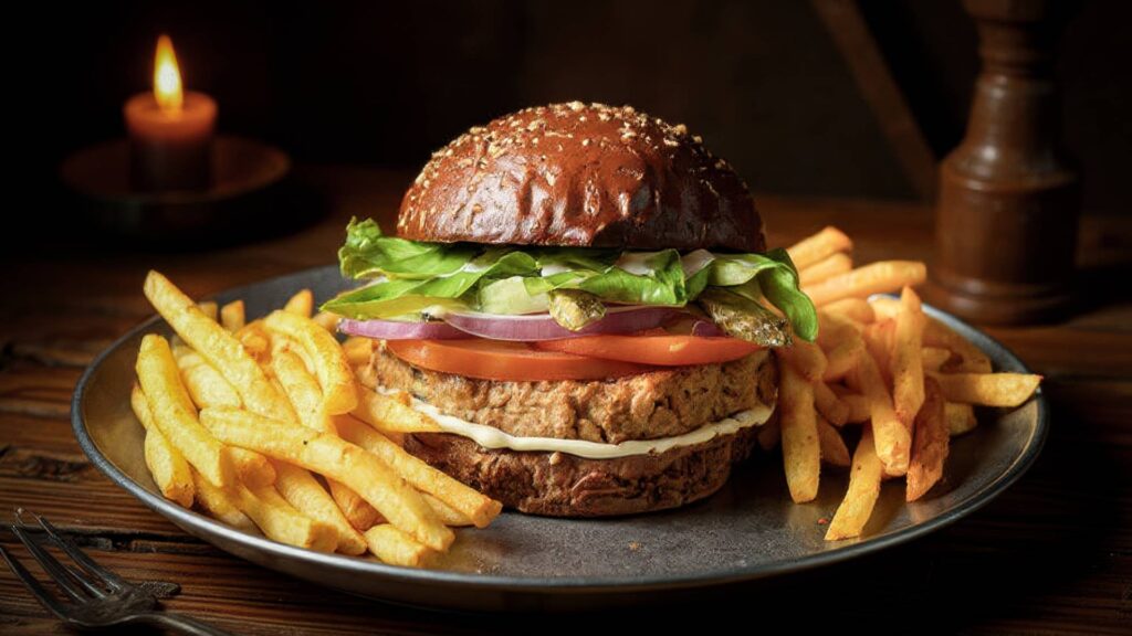 Com clima temático e receitas criativas, o Vikings oferece o Burger Uller Vegetariano, feito com blend artesanal de cogumelos paris, soja e aveia, servido com alface, tomate, cebola roxa, picles e maionese secreta de Odin. Já o Sanduíche Valquírias traz abobrinha empanada com parmesão e panko, cream cheese, alface e molhos da casa no pão baguete de parmesão. Combos com fritas saem por mais R$11,90.