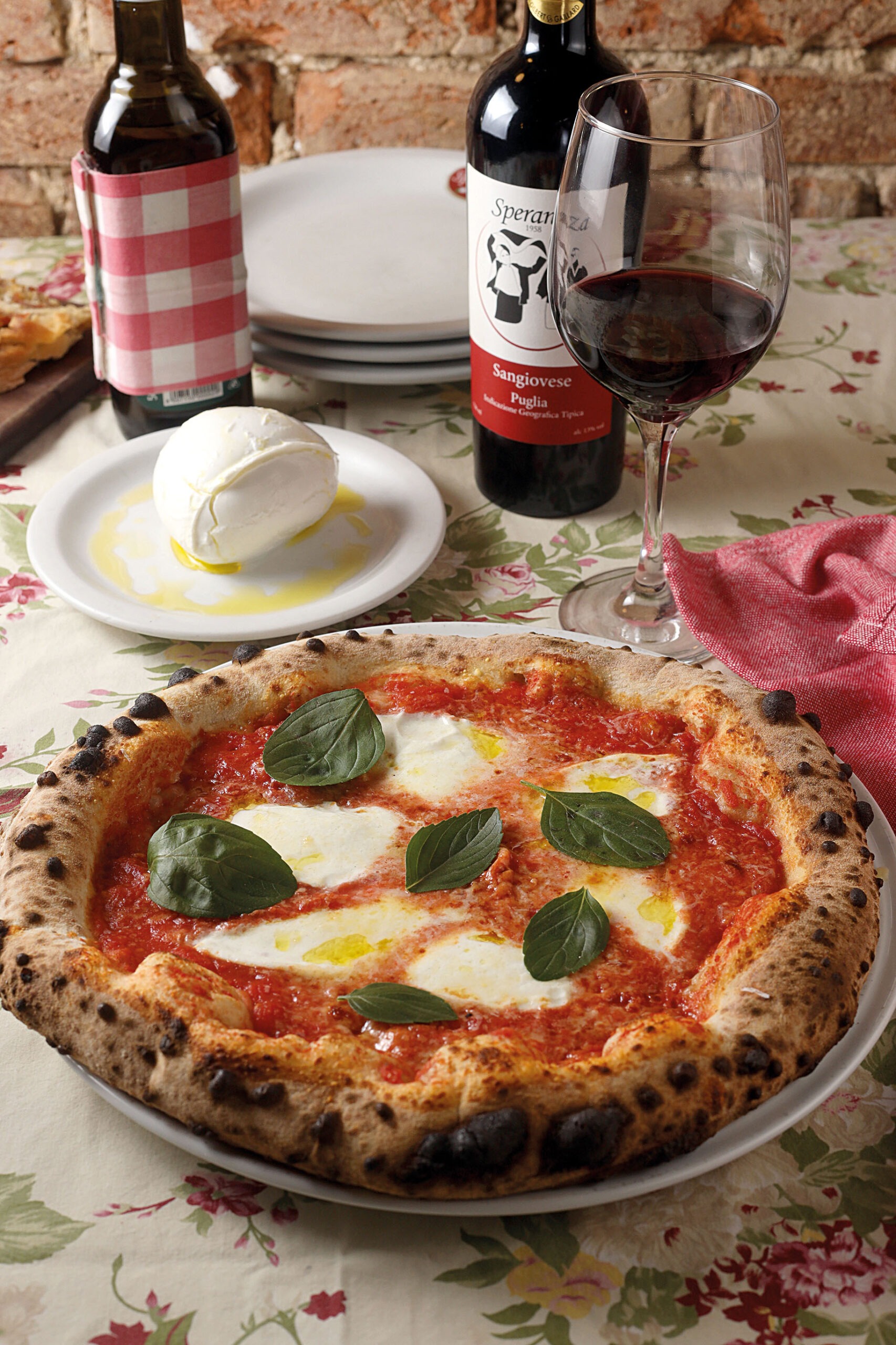 Entre elas a Margherita Verace coloca o Pomodoro San Marzano Dop em foco, a mozzarella di búfala fresca, manjericão genovês, e também finalizada com queijo Grana Padano com 12 meses de cura; a Margherita Alla Crema com balsâmico Tomatinhos cereja assados no forno a lenha, a stracciatella de burrata, e um fio de aceto balsâmico para fechar com chave de ouro; a Margherita Bianca Fresca aposta nos tomates nacionais em pedaços, crus, sobre a mozzarella di búfala fresca, no manjericão genovês e no queijo parmesão com 12 meses de cura; e a Margherita Verdi onde o pesto assume o protagonismo, mozzarella di búfala fresca, tomates assados e tuile de parmesão.