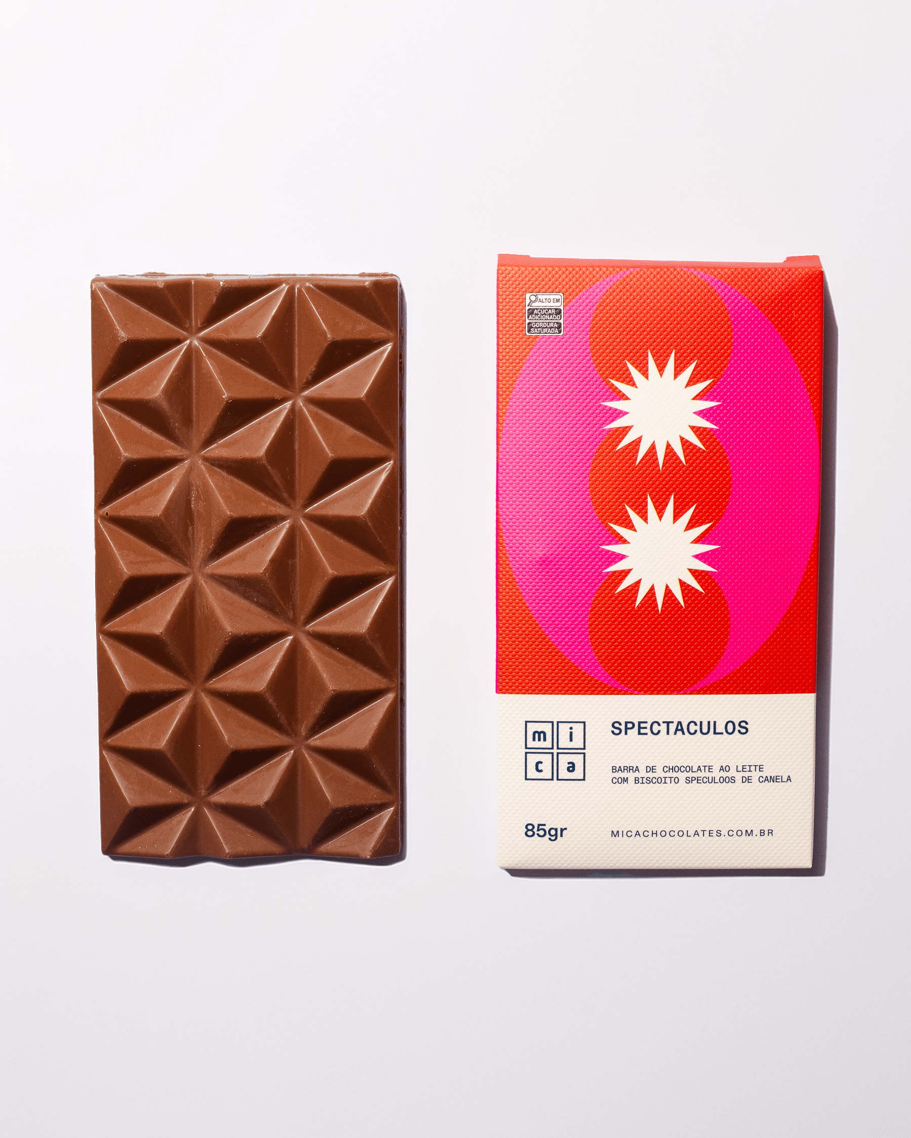 A Mica Chocolates transforma um simples doce em uma verdadeira experiência sensorial. Entre as criações cheias de personalidade, a barra Spectaculos une chocolate ao leite aos biscoitos speculoos de canela, equilibrando o aroma marcante das especiarias com a crocância irresistível da bolacha do momento. Para completar, a embalagem em papel texturizado e colorido dá um charme extra, perfeita para presentear alguém querido ou a si mesmo.