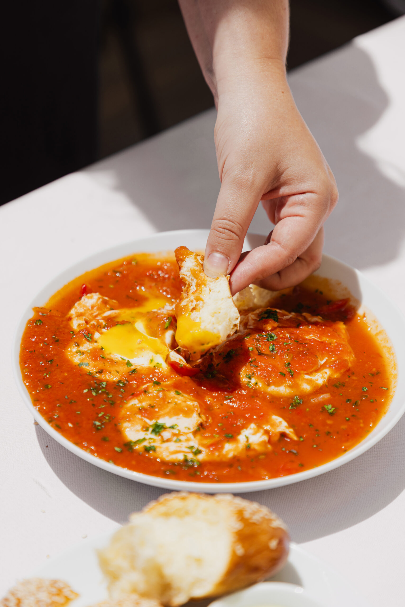 No jantar, servido até as 22h, o ambiente convida a encontros mais longos. O espaço externo, agradável nas noites mais quentes, acompanha taças de vinho e pratos compartilhados, como a Burekas, uma massa folhada de origem sefardita recheada de batata ou queijo com espinafre, servida com ovo cozido, tomate picante e tzatziki. Para finalizar, sobremesas como a tâmara recheada com nozes e coberta de chocolate 70% ou o strudel de maçã e uva-passa encerram a experiência com delicadeza.