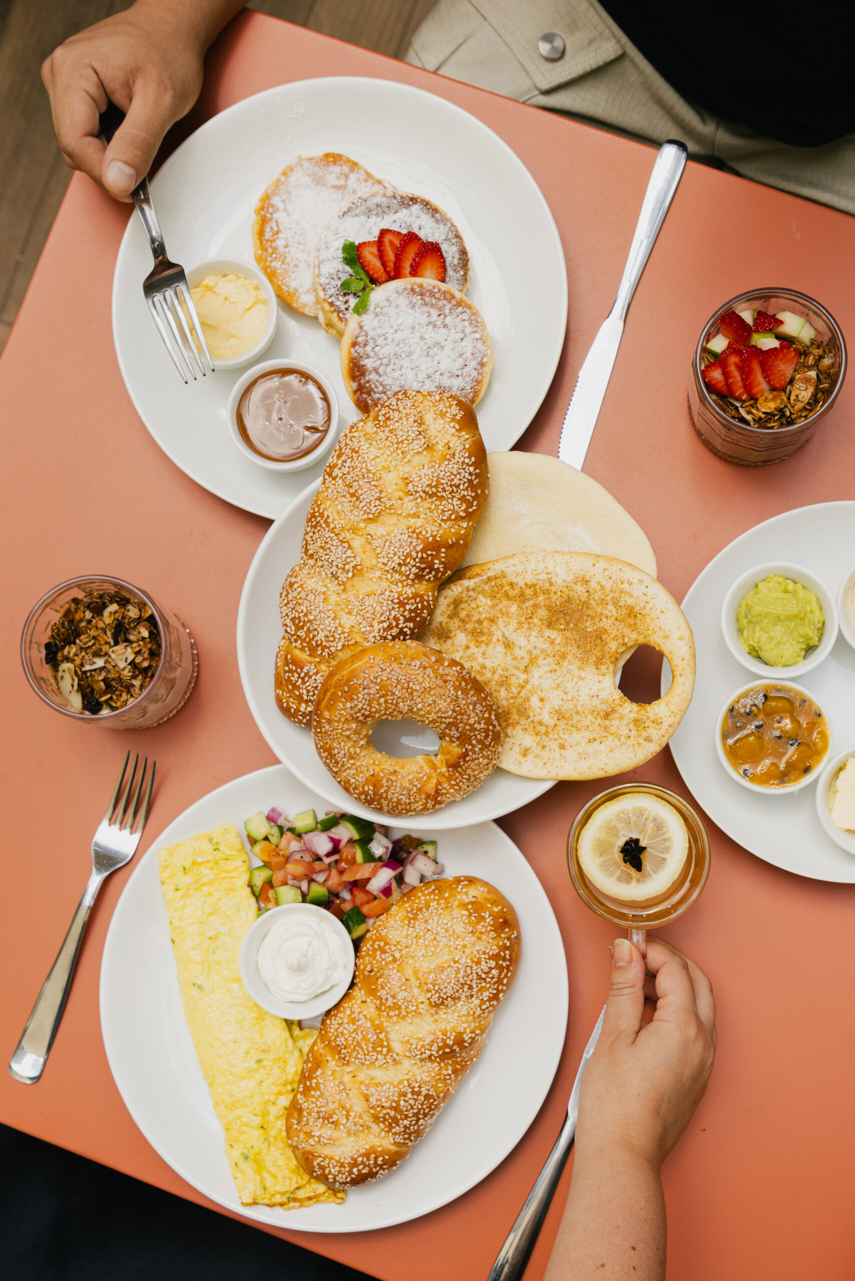 Como padaria, o Sová abre cedo e aposta na produção artesanal. A partir das 8h, o salão ganha o aroma de pães e doces típicos, como o Leicaj de mel, a Babka de chocolate e os tradicionais bagels. Entre as bebidas, o Chá de Nãna — infusão de hortelã muito presente em mesas judaicas e árabes — reforça o clima de hospitalidade.