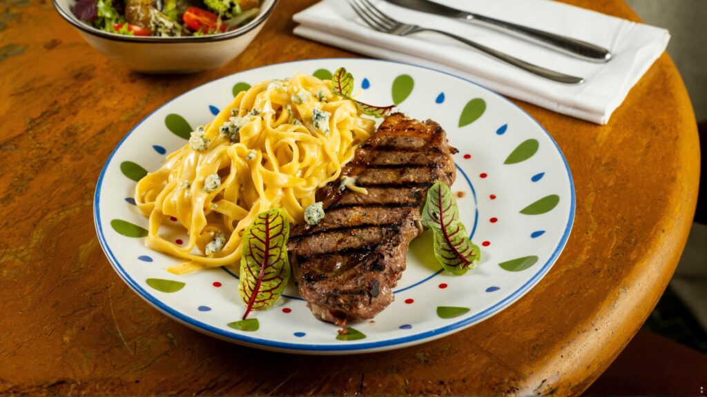 Entre os pratos principais, o menu oferece cinco opções diferentes a cada dia. Na segunda-feira, destacam-se o Chourizzo com Fettuccine ao Gorgonzola e a Moussaka, receita tradicional grega à base de batata e berinjela assadas com ragu à bolonhesa, molho bechamel e parmesão. Às terças, entram em cena o Steak de Atum, servido com purê de batata-doce, cebolas-pérola e brócolis grelhado, e o Cacio e Pepe, spaghetti finalizado com manteiga, pimenta-preta, pecorino e grana padano.