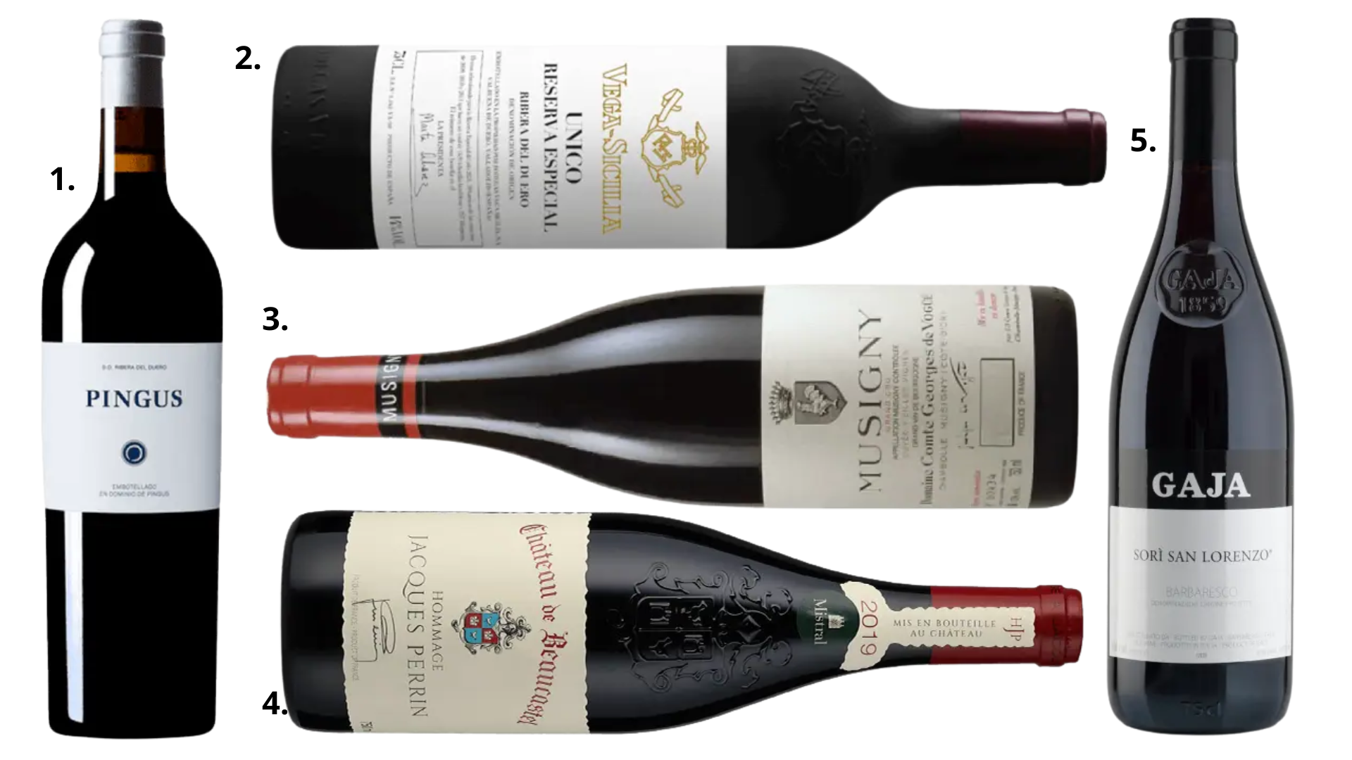 1. Pingus 2018, Peter Sisseck – Uma lenda moderna. Produzido artesanalmente, em pequenas parcelas de vinhas velhas, é o vinho que redefiniu o conceito de exclusividade na Espanha. Em cada safra, menos de 6 mil garrafas de Pingus são produzidas. É um vinho que o mundo inteiro tenta conseguir — e poucos conseguem abrir.