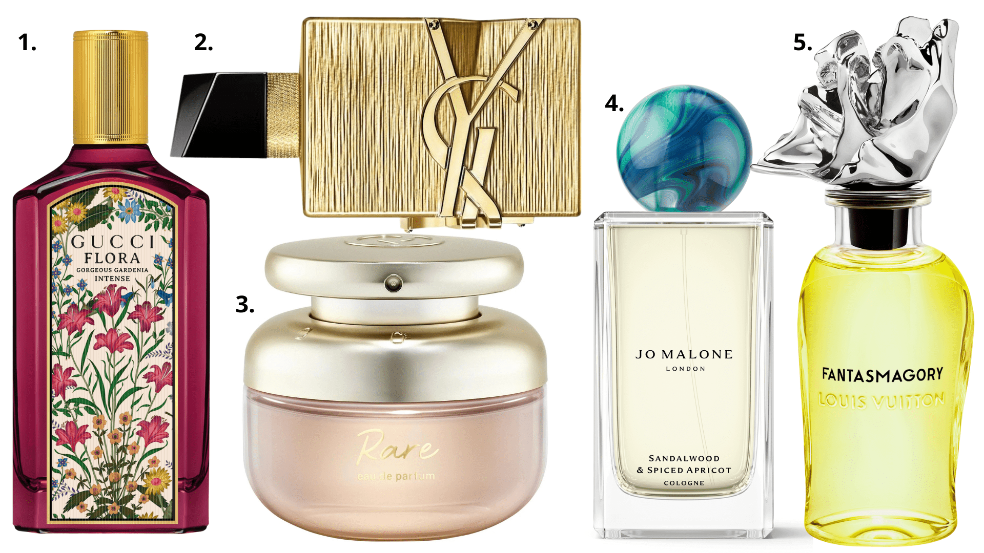 1.Flora Gorgeous Gardenia Intense, da Gucci- Esse eau de parfum tem uma combinação marcante entre acordes florais radiantes e uma base amadeirada. Entre suas notas estão gardênia, mandarina italiana e sândalo.