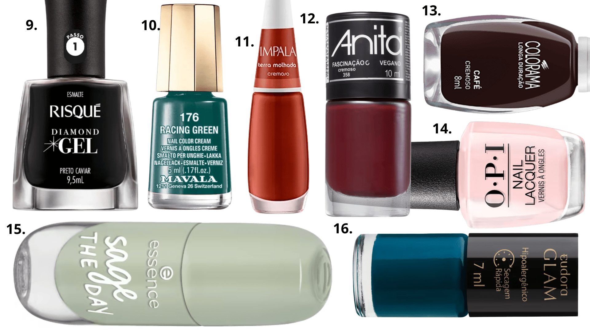 A partir dessas tendências, fizemos uma seleção de esmaltes que traduzem as principais cores do outono 2026, reunindo opções que ajudam a incorporar a paleta da estação ao dia a dia com elegância e versatilidade.