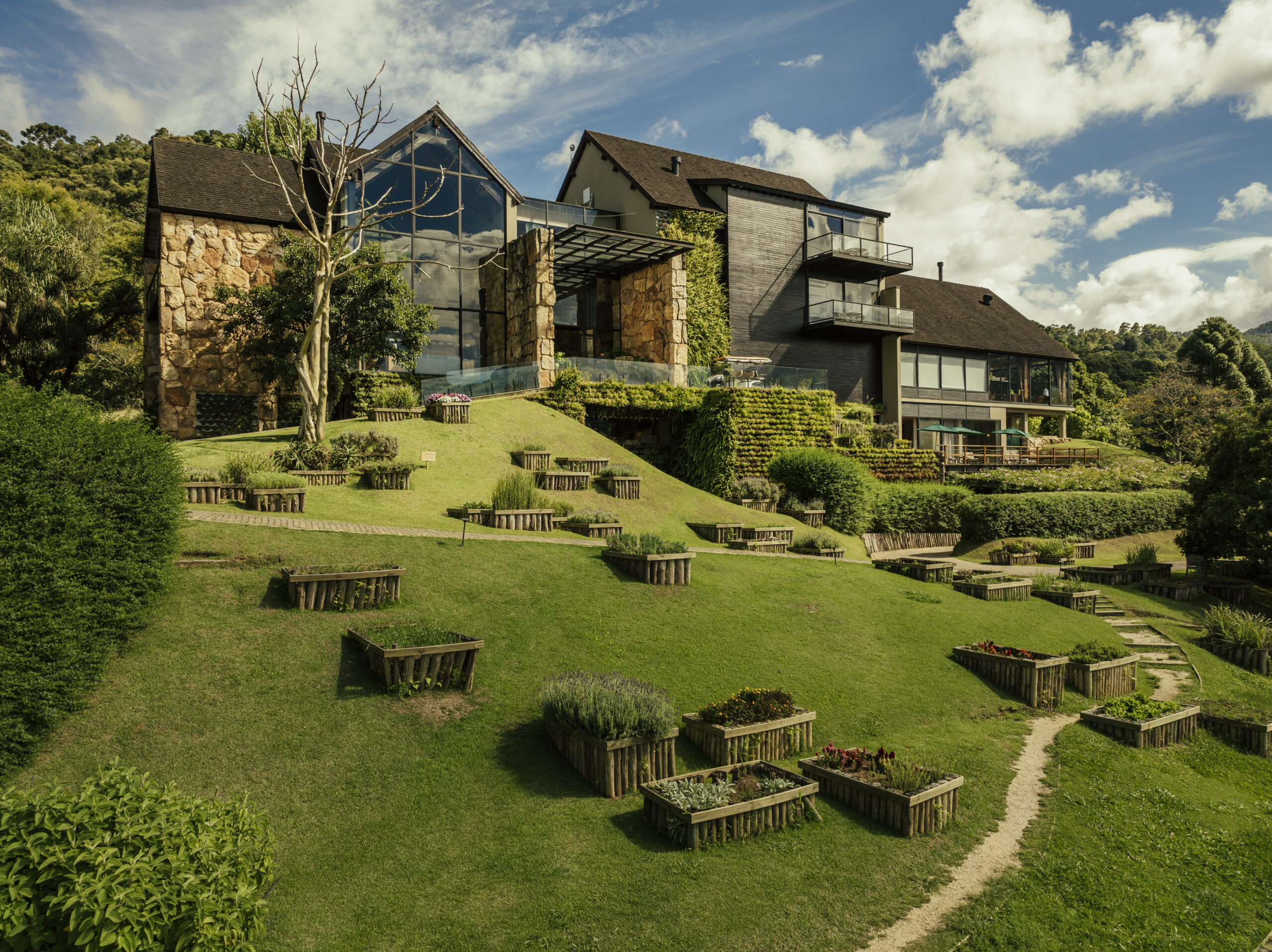 No coração da Serra da Mantiqueira, entre Santo Antônio do Pinhal, São Bento do Sapucaí e Campos do Jordão, o Botanique Hotel Experience tem uma proposta que combina bem-estar, sofisticação e natureza. Concebido para ser um santuário de luxo sustentável, o hotel acaba de ingressar na seleta rede Relais & Châteaux. Com apenas 20 acomodações distribuídas em uma propriedade de 2 milhões de metros quadrados, sendo 7 suítes no edifício principal e 13 vilas espalhadas pelas colinas, o Bo – tanique oferece privacidade, vistas deslumbrantes e integração plena com a Mata Atlântica preservada. A arquitetura, assinada originalmente por Cândida Tabet e com retrofit recente de Kiko Sobrino, privilegia materiais como jacarandá, pedra natural e ardósia chocolate, criando uma atmosfera rústica e sofisticada ao mesmo tempo. As vilas, com até 350 m², têm jardim privativo, lareira, jacuzzi e design exclusivo. No Restaurante Mina, a culinária brasileira é reinterpretada de forma contemporânea, com ingredientes frescos da horta própria e de produtores locais. Um menu degustação harmonizado é servido na adega, enquanto o bar do hotel oferece coquetelaria autoral e charutos selecionados. Já no The Lab, os hóspedes vivenciam oficinas sensoriais que exploram a botânica regional em experiências criativas e educativas. O Botanique também se destaca por suas experiências exclusivas: passeios de mountain bike, trilhas, cavalgadas, parapente no Pico Agudo, observação de pássaros, visita à fábrica de sorvetes e encontros com produtores locais. Para quem busca relaxar, o Botanique Spa é o orgulho da casa: são 900 m² dedicados ao bem-estar, com tratamentos inspirados em técnicas brasileiras tradicionais, massagens com óleos essenciais personalizados, saunas com vista para a mata, piscina terapêutica com CO2 e linhas de cosméticos naturais brasileiros. O paisagismo, com assinatura de John Brookes, é outro diferencial: 400 caixas de horta, jardins verticais e espécies raras como jerivás e iresines vermelhos se mesclam à mata nativa e às centenárias araucárias, criando um ambiente de imersão natural e educativa.