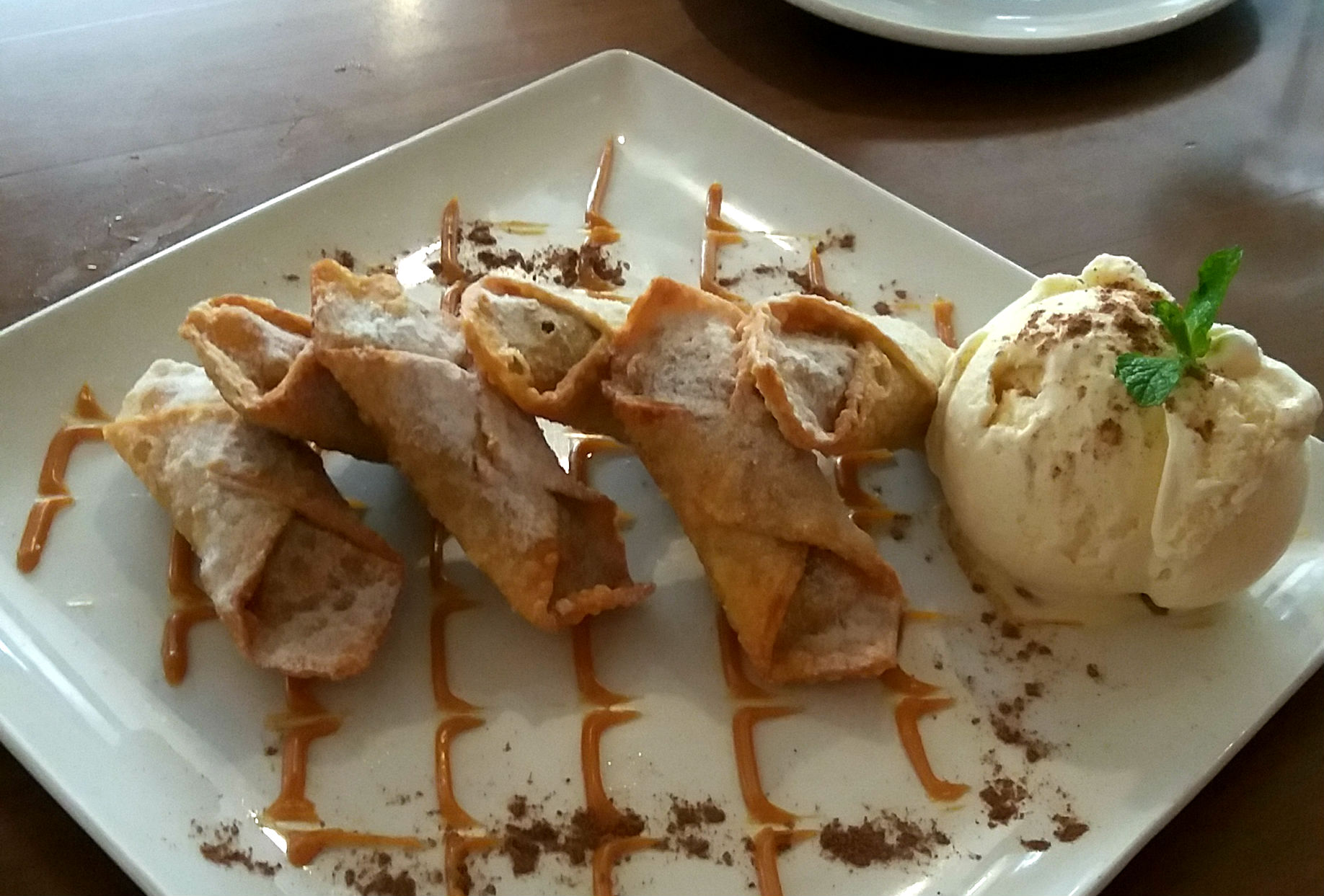 - Sobremesa Apple Crunch, do PF Chang’s: wraps recheados de maçã, sorvete, doce de leite e canela.